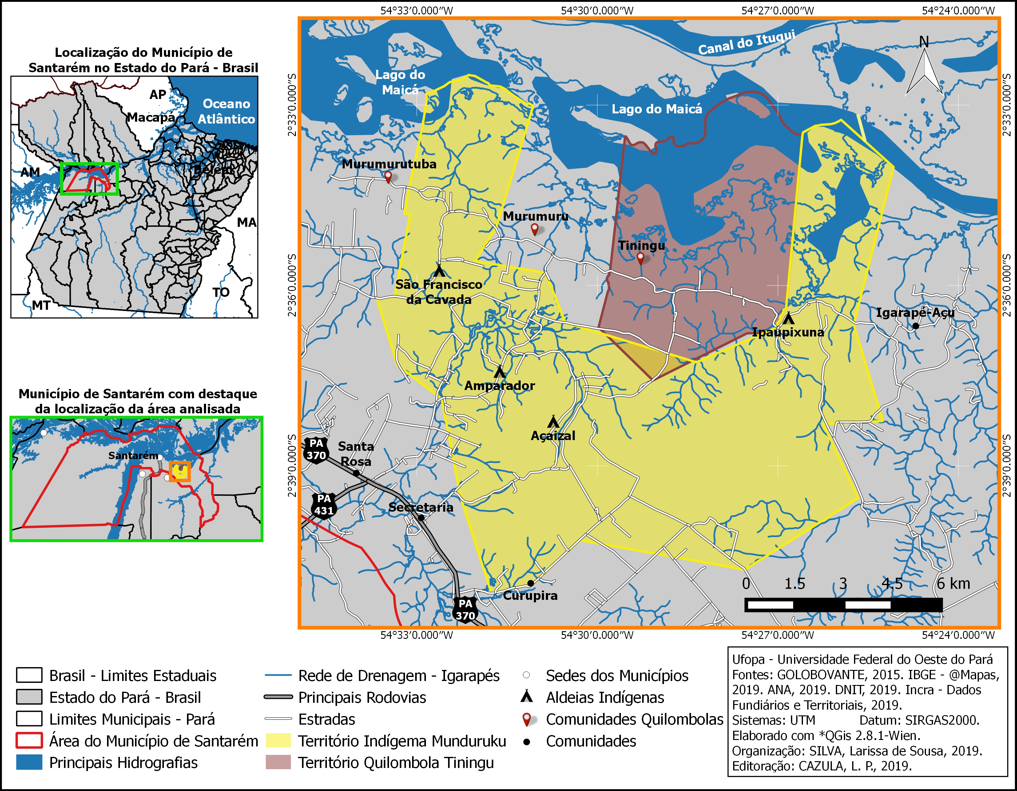 Resumo PDF FIGURA 1: Mapa de localização de municípios selecionados no oeste do Pará. Figura 2: Porto da Cargill localizado na orla da cidade de Santarém FIGURA 3: Localização da área pretendida para instalação do Porto da EMBRAPS Figura 4: composição de fotografias da área a ser atingida pela implantação do “Porto do Maicá” FIGURA 5: Mapa de autodemarcação da Terra Indígena Munduruku Planalto e sua localização no município de Santarém e no estado do Pará. Figura 6: Composição de fotografias da comunidade Açaizal Figura 7: Esquema geo-gráfico da espacialidade da comunidade açaizal -