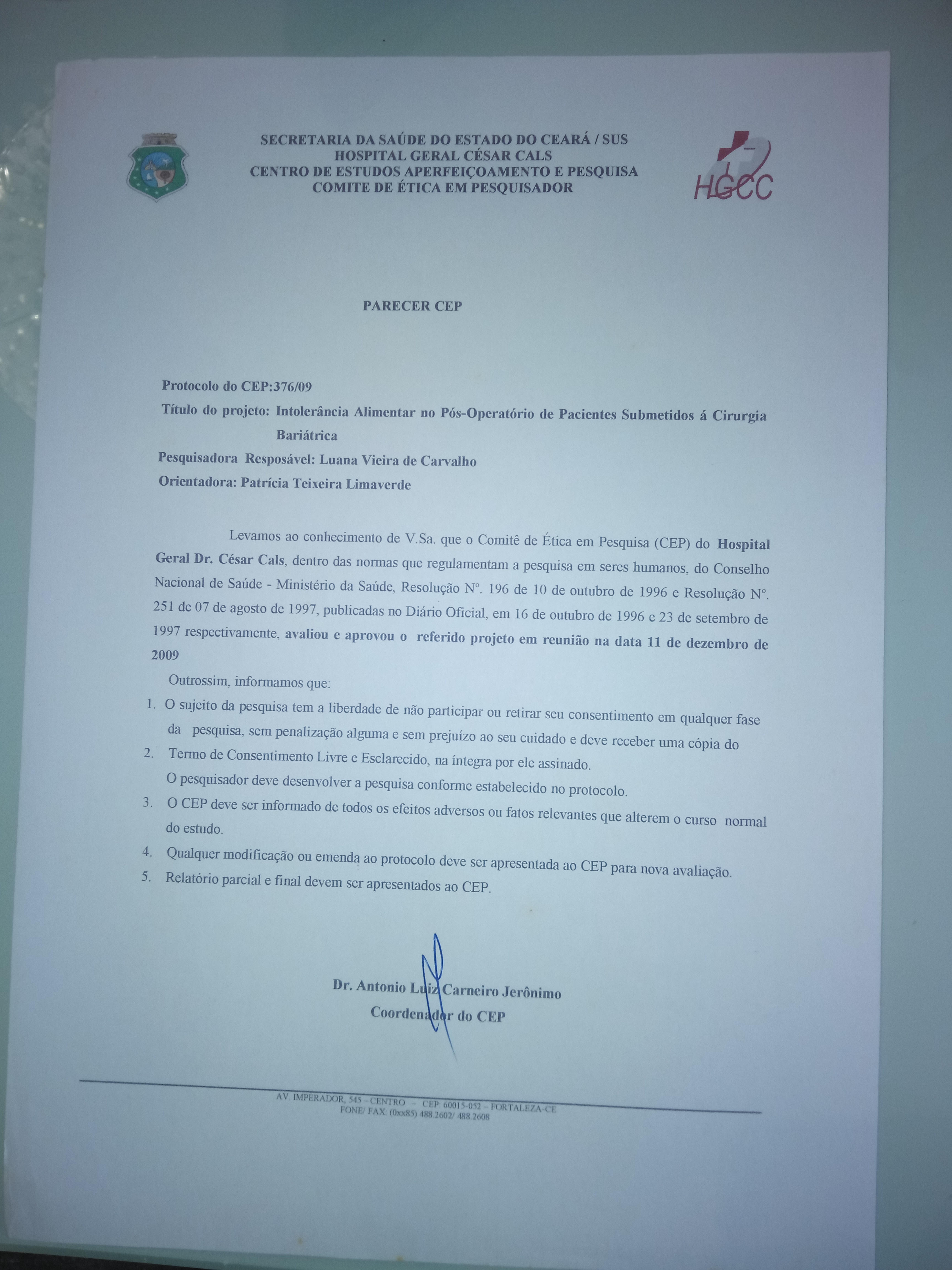 INTOLERÂNCIA ALIMENTAR NO PÓS-OPERATÓRIO DE PACIENTES SUBMETIDOS À CIRURGIA BARIÁTRICA EM UM HOSPITAL PÚBLICO DE FORTALEZA-CE